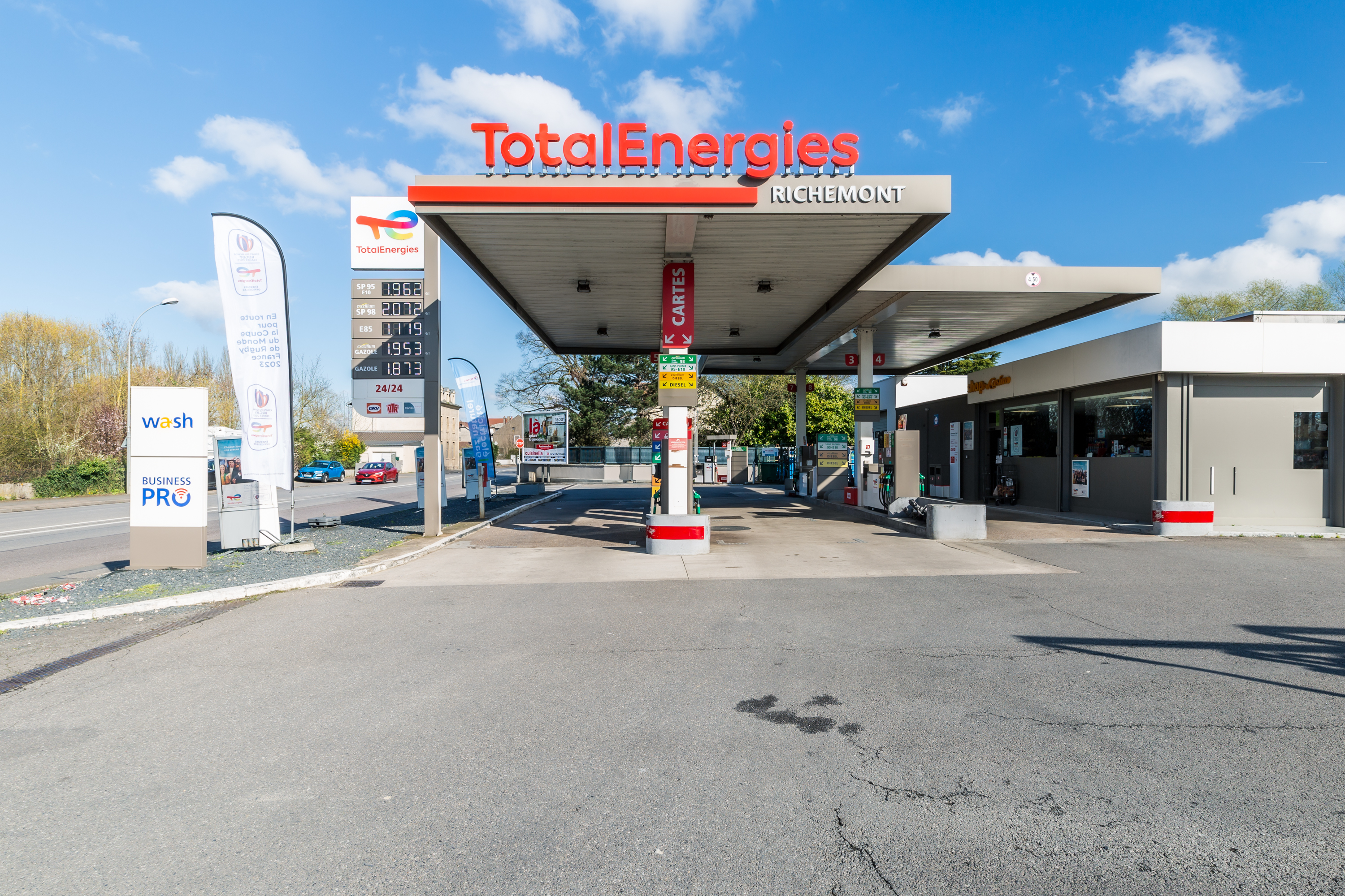Chaque station-service TotalEnergies propose des services de proximité pensés pour vous simplifier la vie et faire le plein d'énergie. Retrouvez une large gamme de prestations pour entretenir votre véhicule en toute sérénité. Cette station est partenaire de l'application Justbip, qui facilite l'accueil des personnes à mobilité réduite en leur permettant de prévenir le personnel de leur arrivée afin d'être servies. Les stations de lavage Wash vous offrent une solution complète de nettoyage extérieur et intérieur. Selon vos besoins, vous pouvez choisir entre différents modes de lavage : rouleaux, haute pression, ou encore aspirateurs et tape-tapis pour un soin optimal.