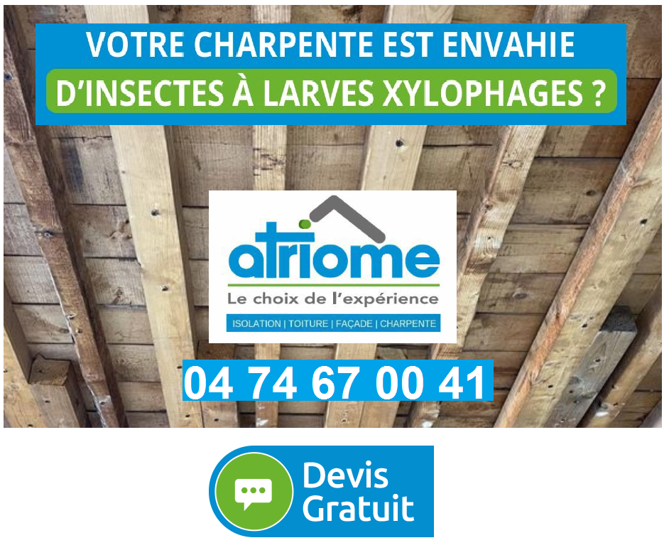 ATRIOME (ATM 69) entreprise spécialisée dans le traitement du bois, l'isolation des combles, le démoussage le traitement des toitures, la ventilation et l'étanchéité pour votre habitat. Nous sommes certifiés Qualibat RGE et Certibiocide, ce qui garantit la qualité de nos services et notre engagement en faveur de l'environnement. Les devis sont gratuits pour tous nos services, notamment l'imperméabilisation des toitures et des façades, l'assainissement des charpentes et le contrôle de l'isolation. Contactez-nous pour une ventilation mécanique contrôlée, une étanchéité ou une rénovation de toiture ou une pose de gouttières. Nous intervenons dans le Rhône, l'Ain, la Saône et Loire, la Loire et L'Isère.