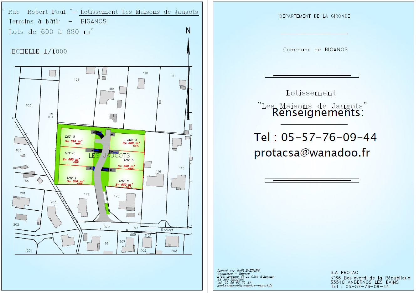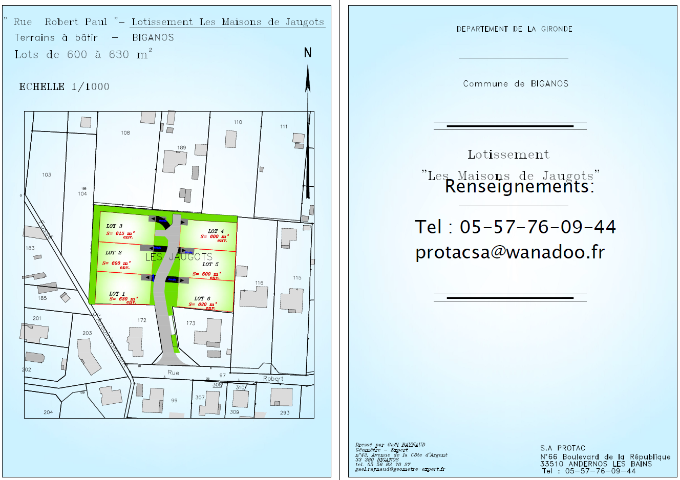 La société PROTAC (Promotion et Transaction d'Aquitaine) a été crée en 1978, elle est spécialisée dans la création de terrains à bâtir viabilisés, en construction libre, son activité s'est surtout développée dans le secteur du Bassin d'Arcachon et le nord des Landes.