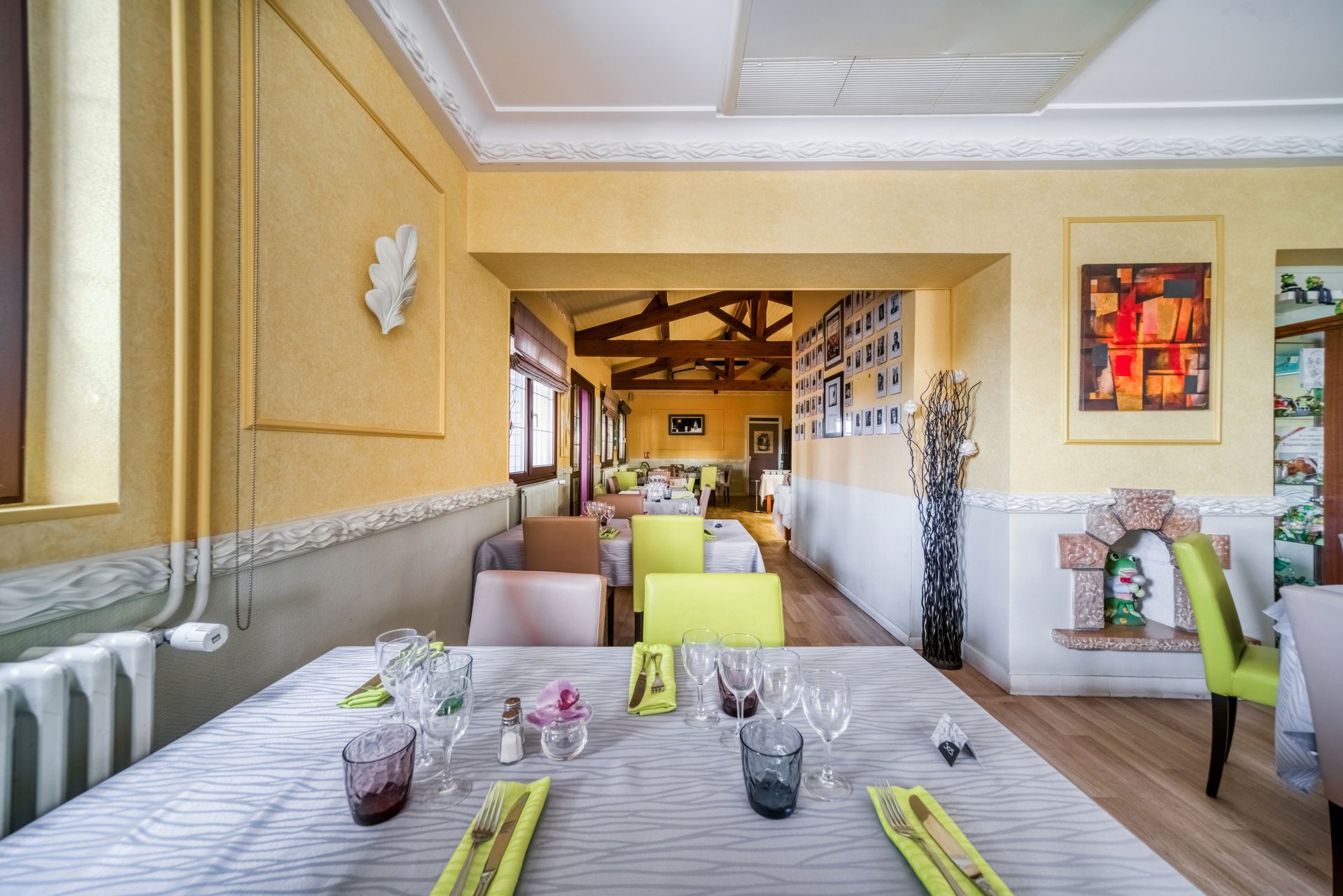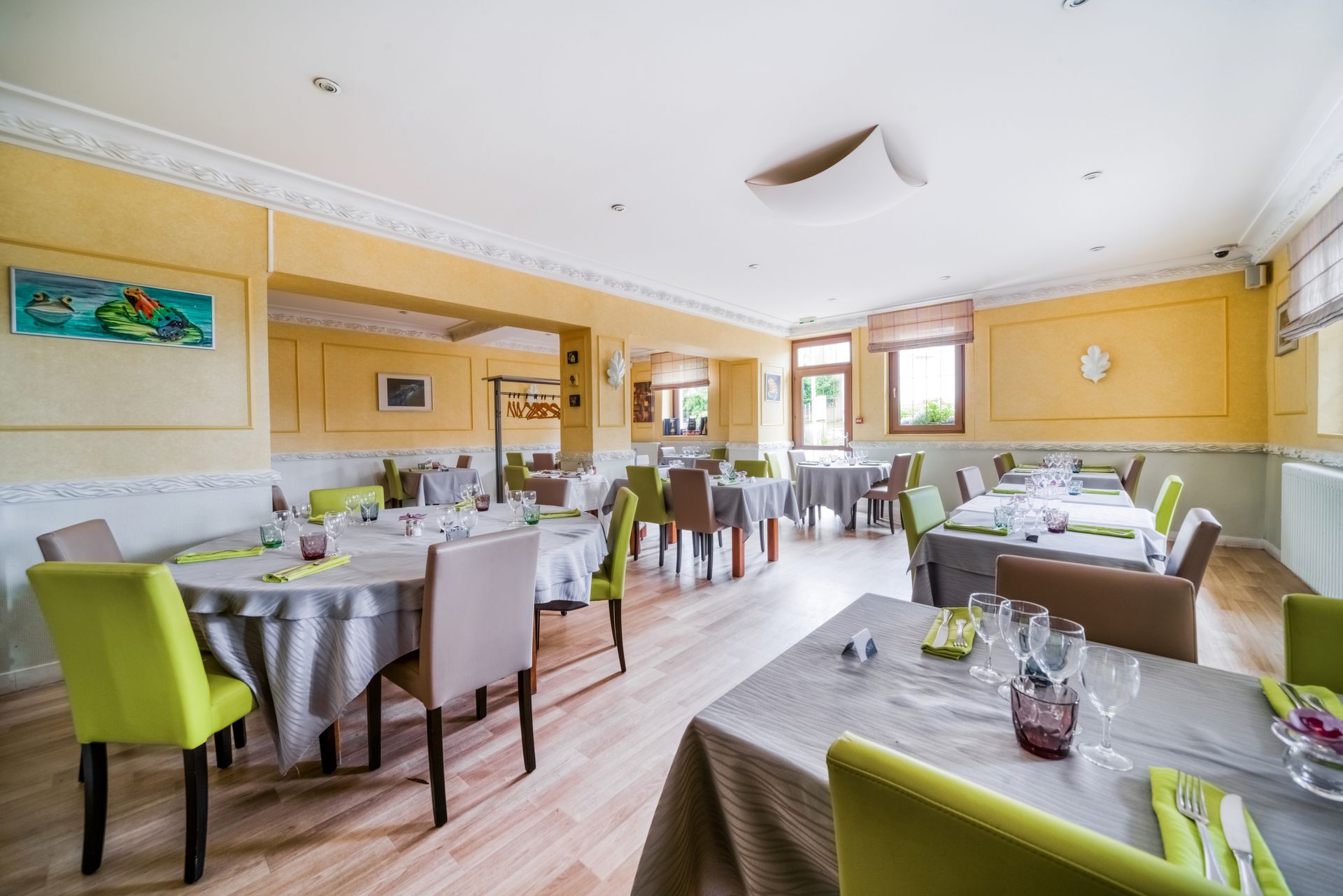 Au cœur de la Dombes, notre restaurant attire depuis 160 ans des générations de gourmets. Nous vous proposons une cuisine traditionnelle et des valeurs sûres de la gastronomie locale. Notre brigade vous mijote des goujonnettes de carpe, du poulet de Bresse à la crème ou les grenouilles qui font la renommée du pays aux mille étangs. Spacieuse et lumineuse, la véranda accueille vos repas de groupes et vos mariages. L'été, la terrasse prend ses aises et des petits coins salon sont aménagés dans le ...