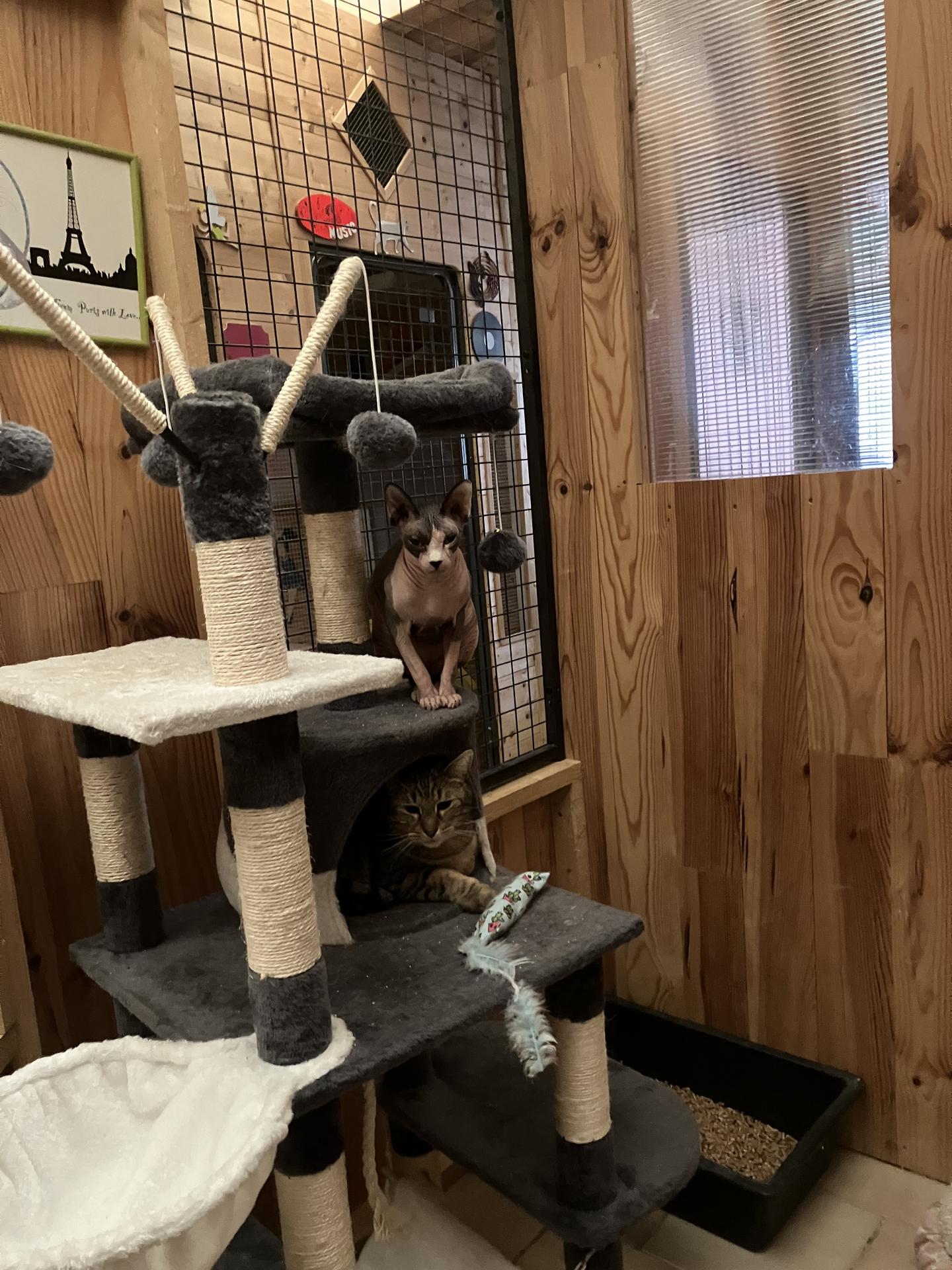 Les chats ont accès à une chatterie extérieure sécurisée.