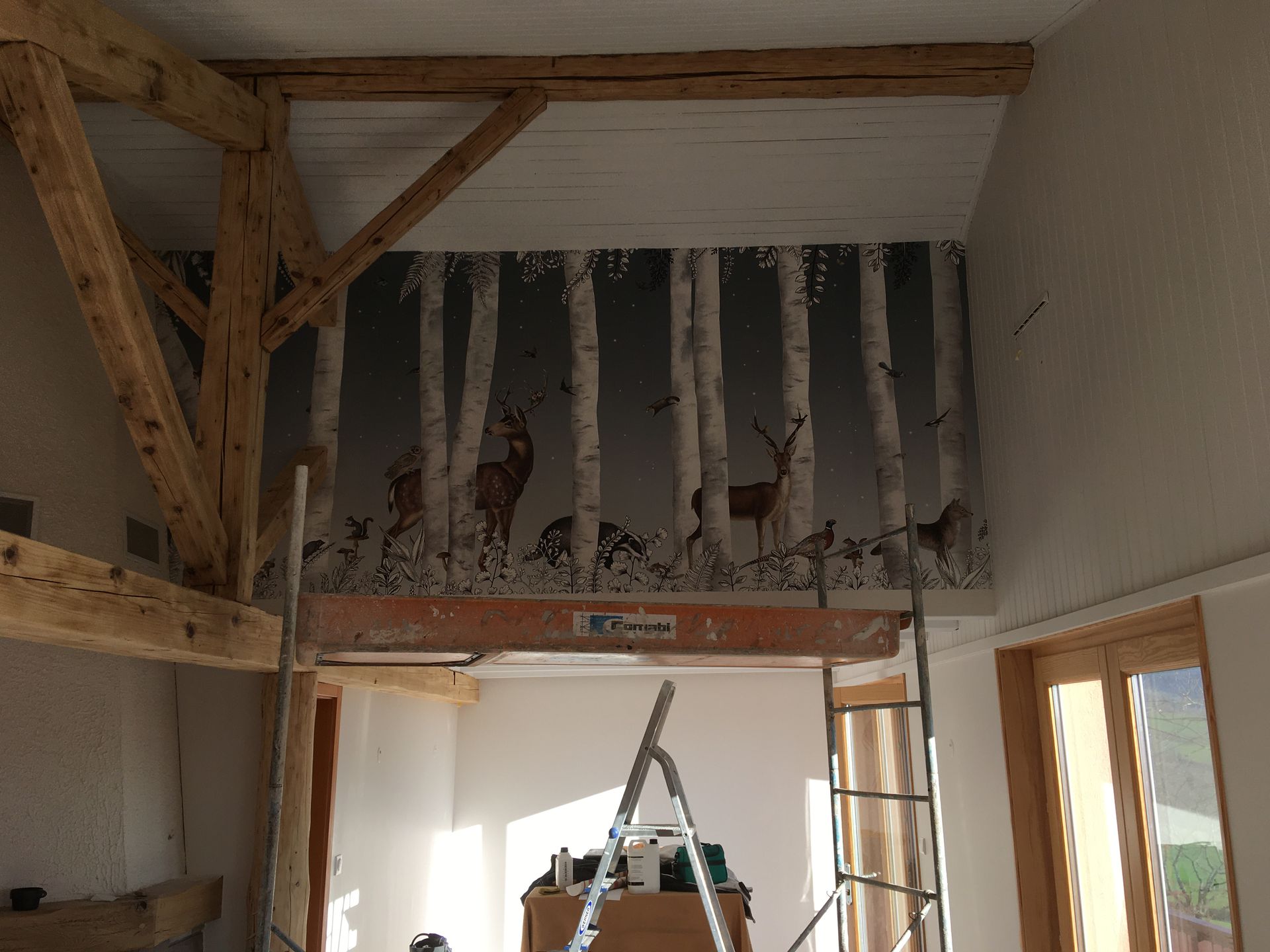 En intérieur : Peinture - Papier peint - Papier décor- Revêtement de sol et murs - Projection décorative.