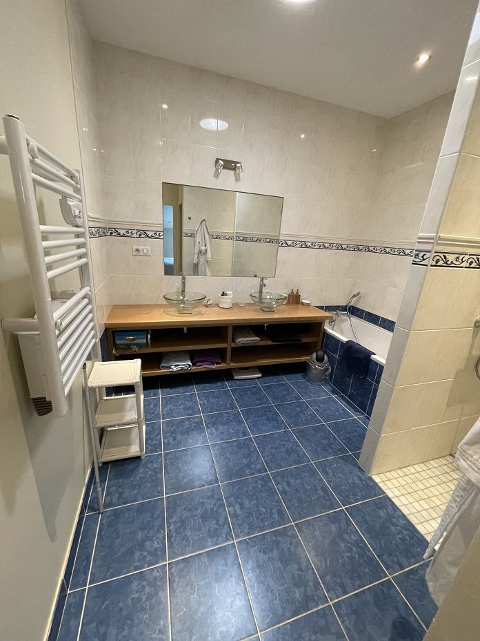1 Grande Chambre avec grand lit 160x200, Climatisation, Salle de Bain avec Baignoire, Douche Italienne et WC