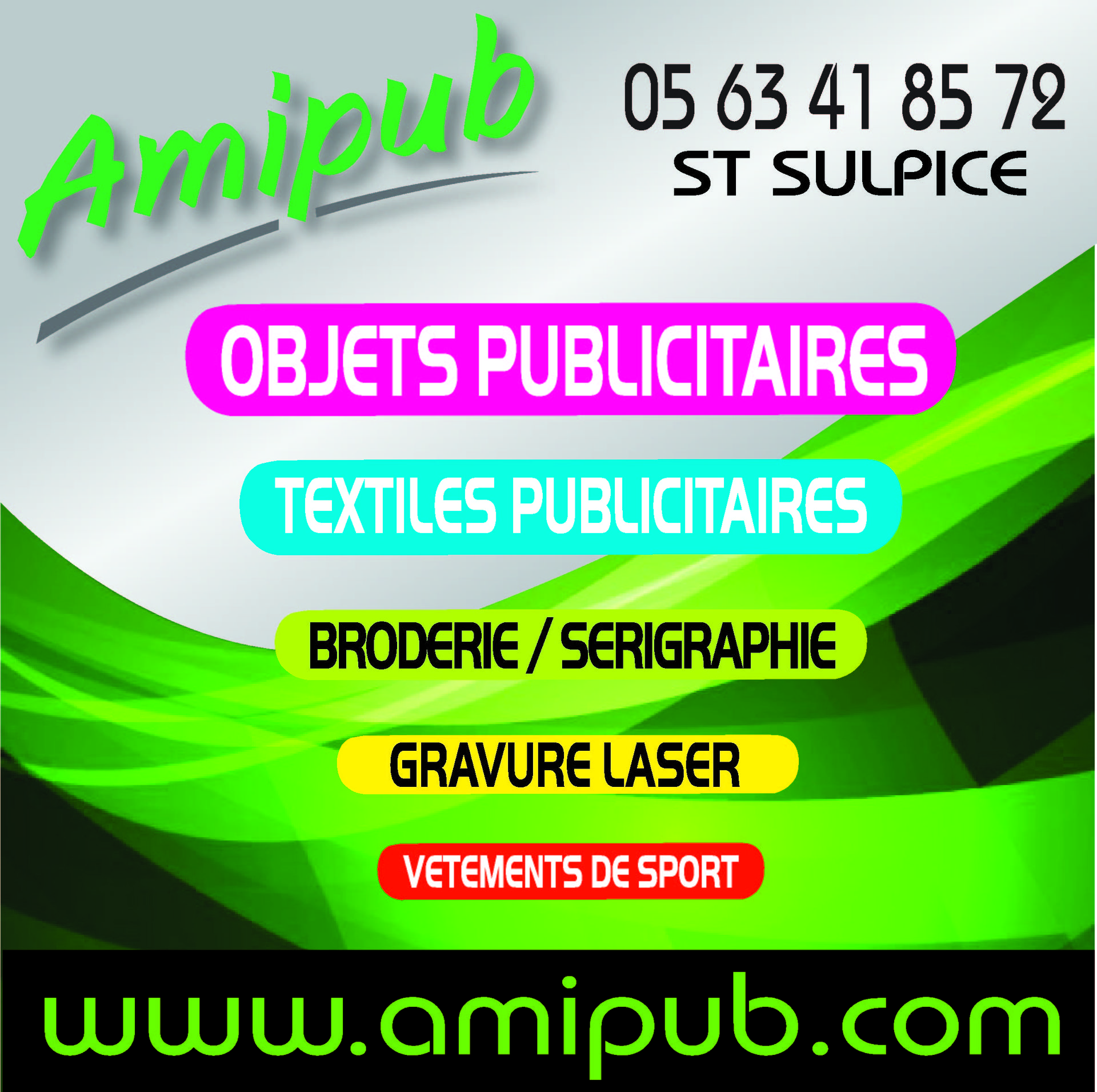 AMIPUB est une entreprise de publicité par l'objet et sérigraphie sur la ville de Saint Sulpice la Pointe.