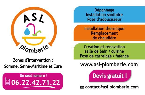 L'entreprise ASL Plomberie intervient rapidement pour tous vos travaux de plomberie, dans le neuf ou la rénovation. Elle gère également la pose de chaudières et toutes autres installations thermiques. Elle est spécialisée dans la création et la rénovation de salles de bains et de cuisines. Vous n'avez qu'à partager avec nous, vos attentes, vos idées et vos goûts. Nous saurons vous conseiller et vous proposer les produits adaptés à votre demande, à vos besoins, ainsi qu'à votre budget. Nouveau : ASL Plomberie intervient désormais sur toute la baie de Somme. N'hésitez pas à nous contacter pour vos devis et vos demandes de dépannage.