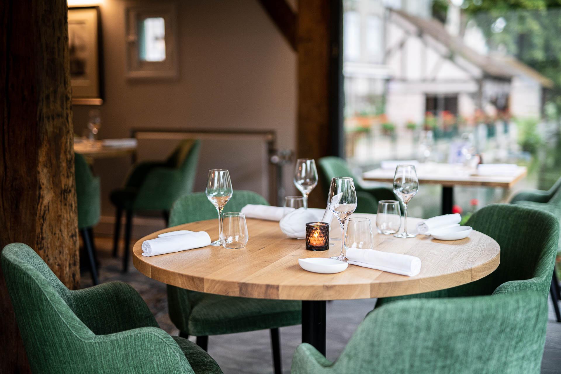 Le moulin de Ponceau\nC'est un véritable coup de cœur familial qui amène Franck, Mickaël et Stéphane à vouloir redonner ses lettres de noblesse à cette adresse chartraine connue de tous.\n\nCette jolie maison du XVIème siècle, située dans le cœur historique de la ville et au bord de l'Eure, propose dans une ambiance feutrée, une cuisine raffinée, une gastronomie de terroir . Le chef Yannick Tabart compose une carte évoluant au fil des saisons et basée essentiellement sur des produits locaux issus d'une agriculture raisonnée.\n\nNotre cuisine\nNous favorisons une approche sensuelle de la gastronomie du terroir, élaborée à partir de produits frais et de saison.\n\nC'est une rencontre entre des producteurs, des vignerons et des petits artisans, là où la gastronomie et l'art de vivre ont leurs racines.