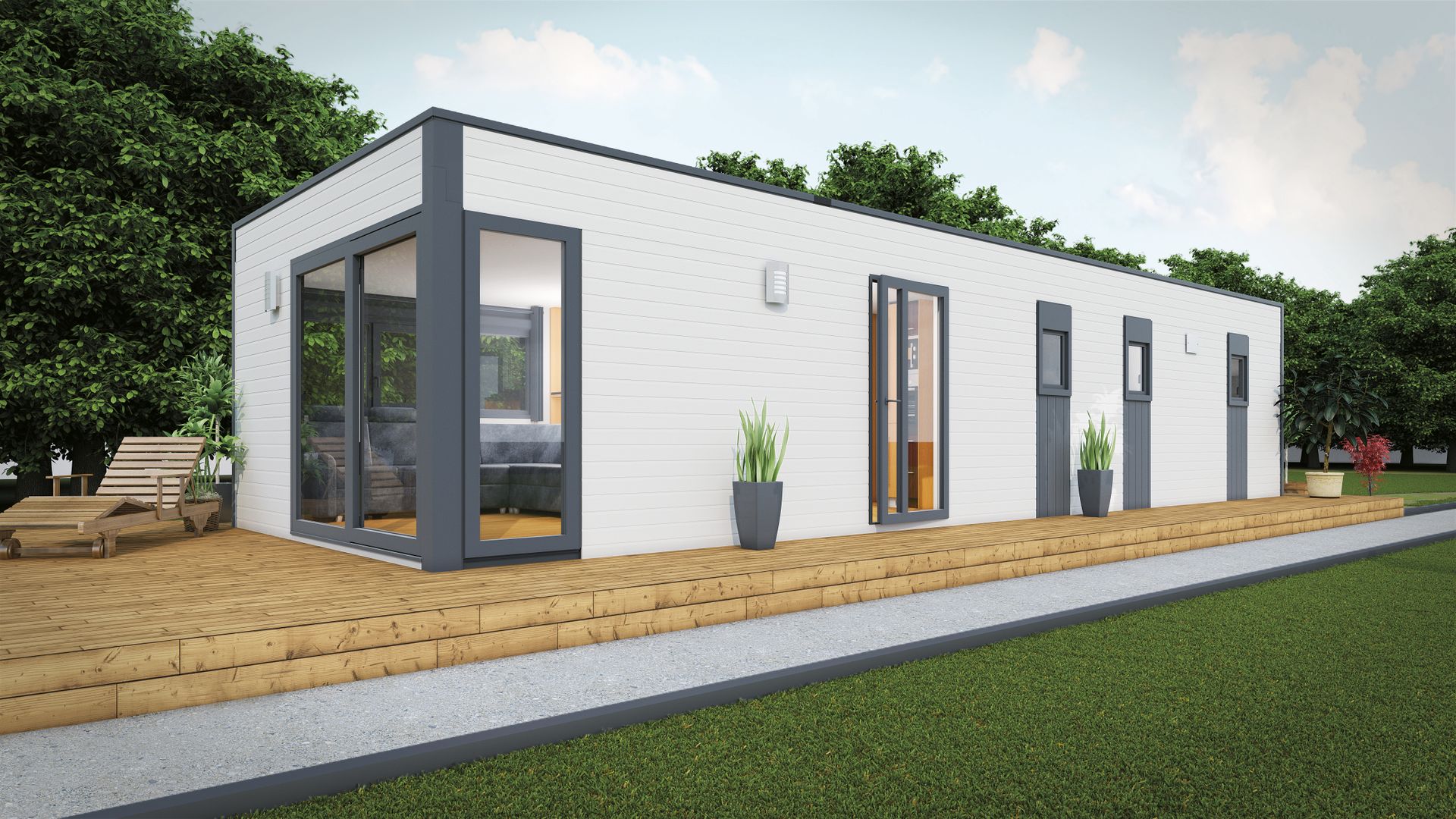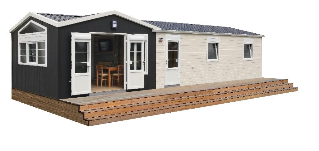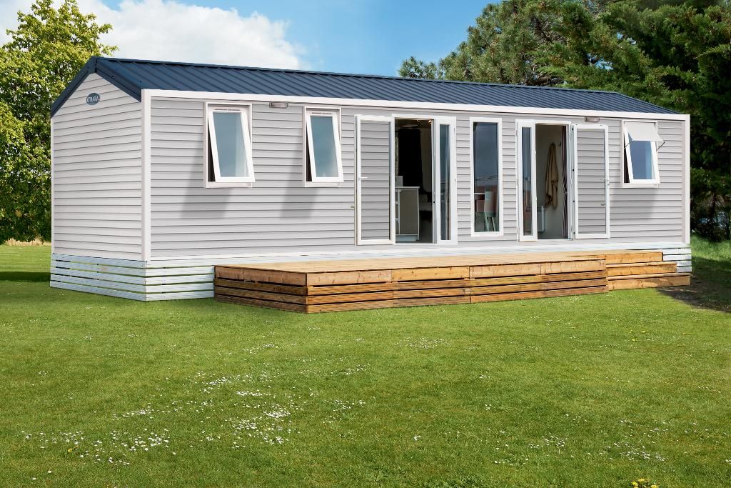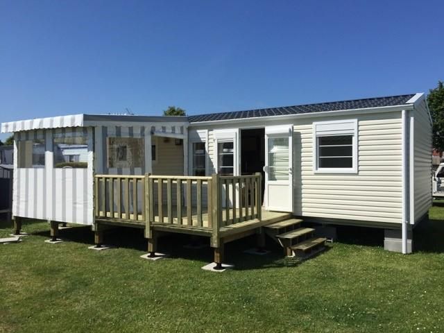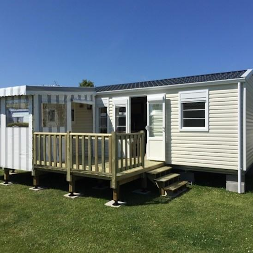 Ouistreham Loisirs est spécialisé dans la vente de Mobil home neuf et d'occasion, chalet et accessoires : Terrasse et abri de jardin