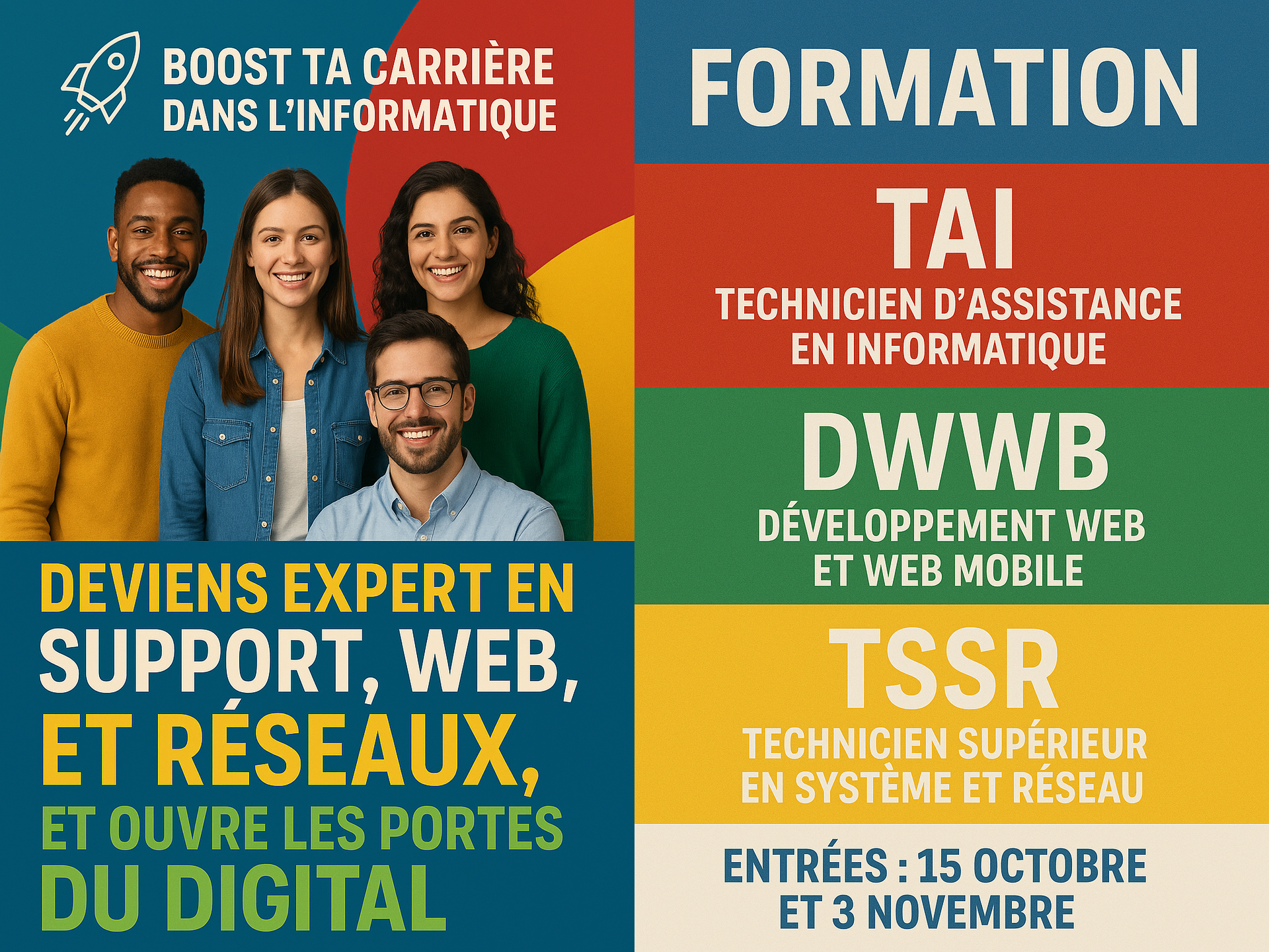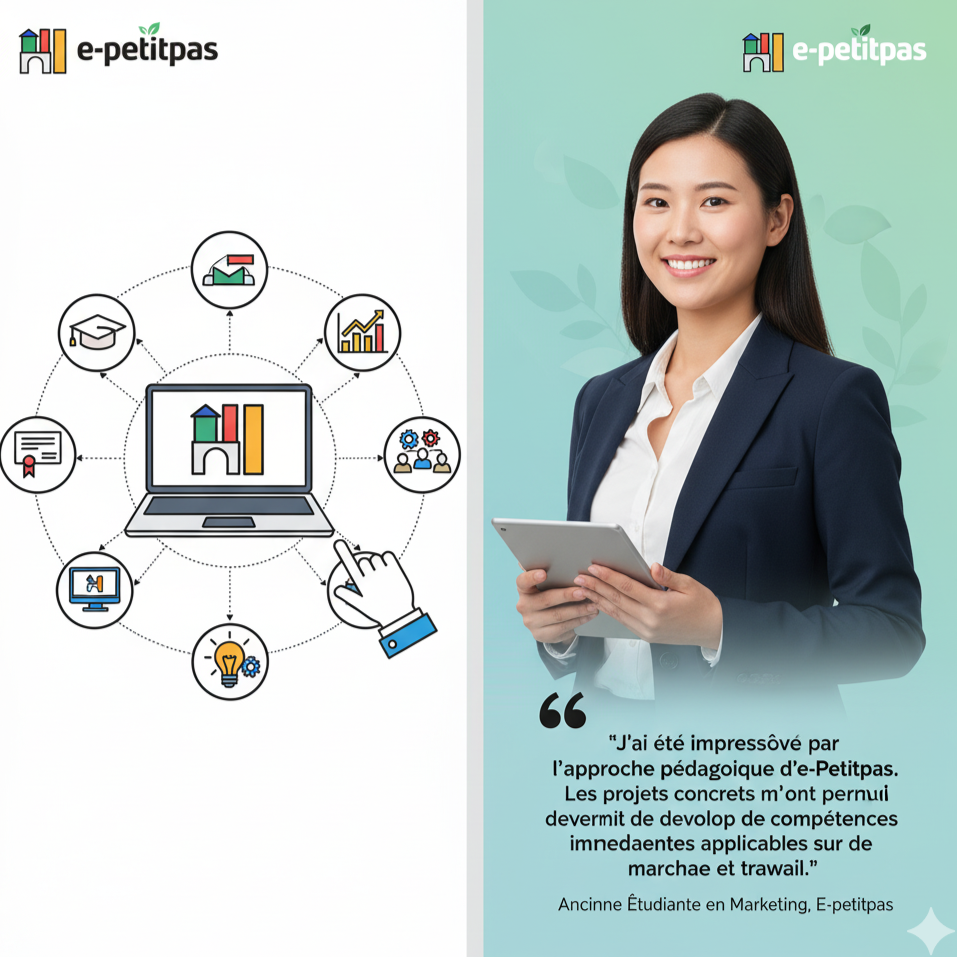Bienvenue chez E-PetitPas, votre partenaire de choix pour une formation professionnelle de qualité en informatique et management d'entreprise. Situé au cœur d'Argenteuil, notre centre de formation d'élite offre des programmes complets et flexibles, notamment dans les domaines de l'informatique (TAI, TSSR, développeur Web, Testeur logiciel, Intelligence artificiel, Bureautique : Word - Excel - PowerPoint - Internet, Expertise Numérique) du management et des langues (français et anglais). Avec une approche pédagogique innovante et des formateurs experts, nous vous accompagnons dans votre parcours de développement personnel et professionnel. Rejoignez-nous dès aujourd'hui pour faire le premier pas vers une carrière réussie et épanouissante.