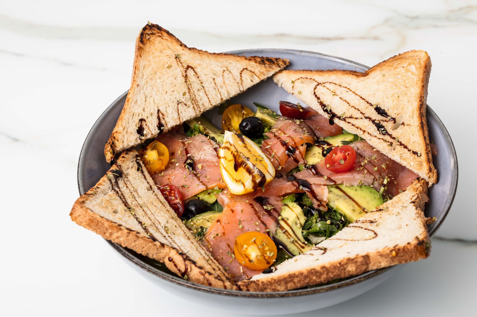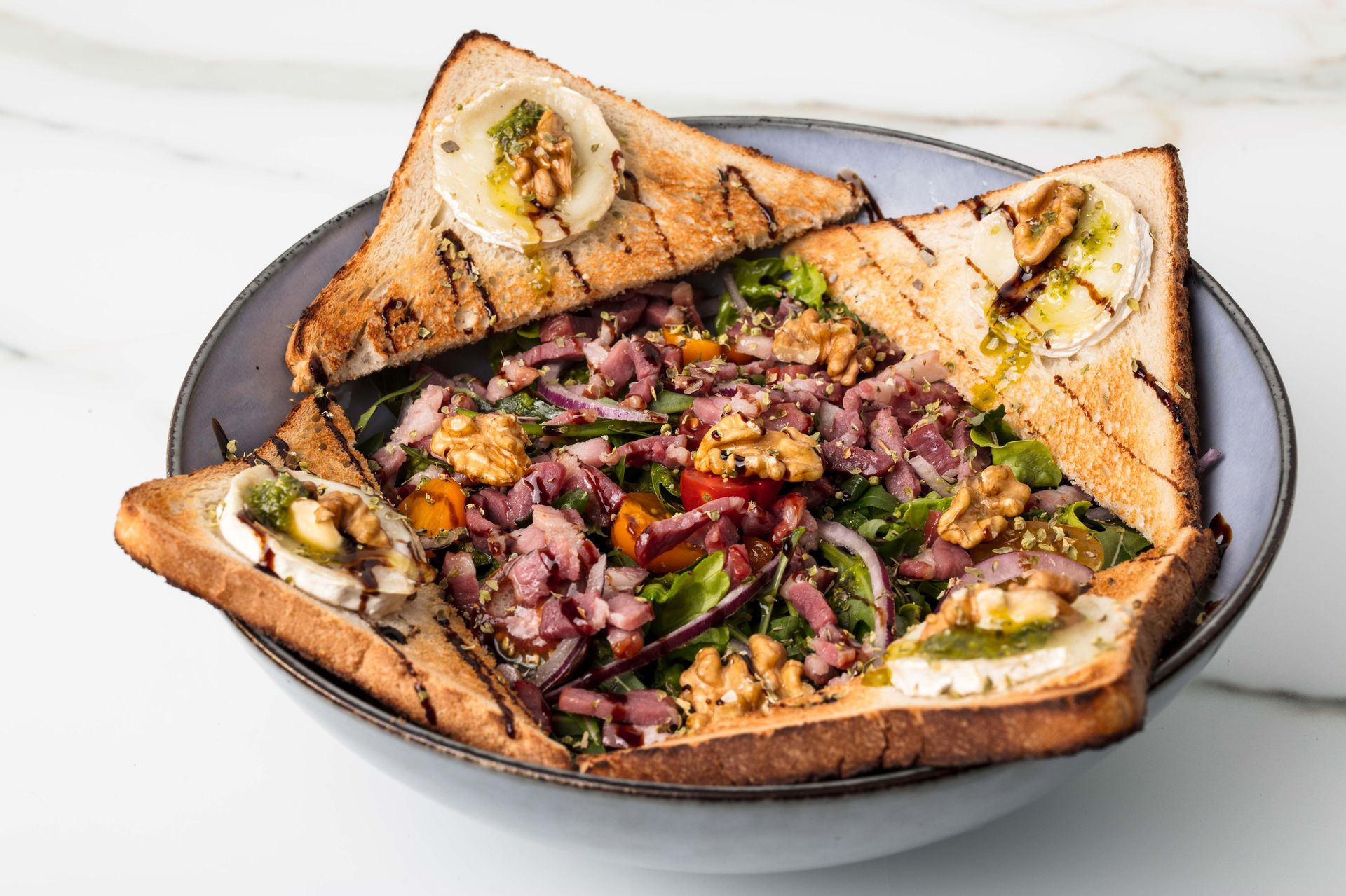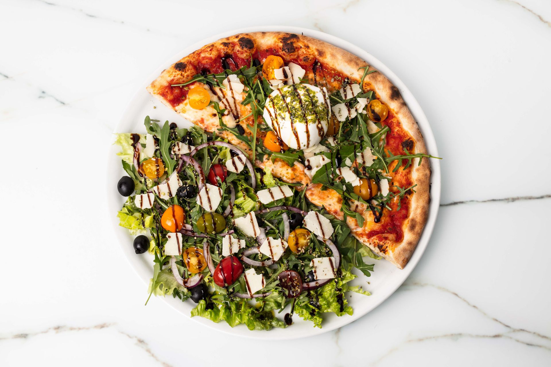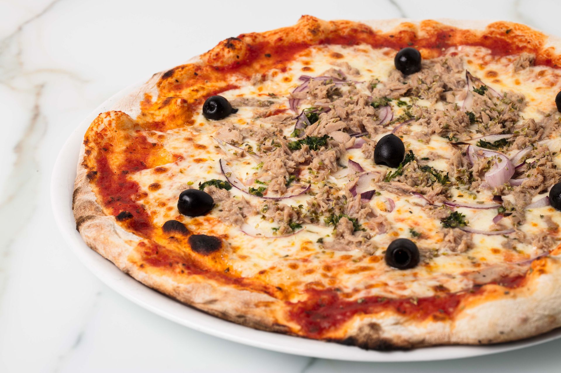Dégustez nos meilleures pizzas, pâtes, salades, desserts, cocktails, vin et bières, sur place dans un cadre agréable, cosy en intérieur, dans une salle climatisée.
