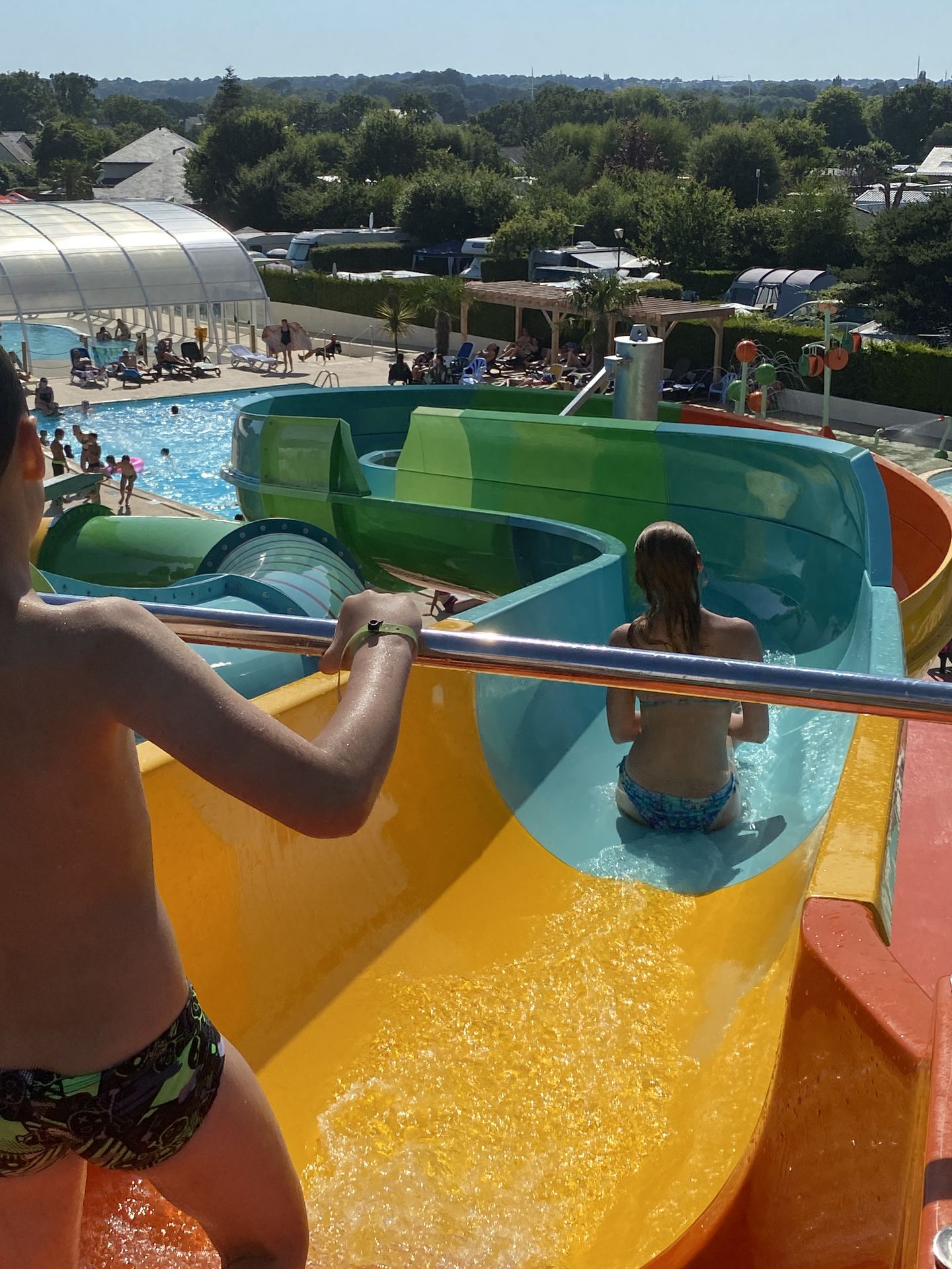 A 150 mètres de la plage, notre camping vous ouvre ses portes. Nos 4 hectares et demi de verdure vous attendent pour un séjour de rêve en mobil-home, en caravane ou en tente. Dans une ambiance familiale, en bord de mer, profitez des avantages du camping et découvrez nos petits plus : parc aquatique avec piscine chauffée couverte, piscine chauffée extérieure, toboggans aquatiques, animations, club enfants. Nombreux services sur place: snack, pizzas à emporter, épicerie, dépôt de pain, laverie. De passage dans le Finistère. Contactez-nous pour réserver.