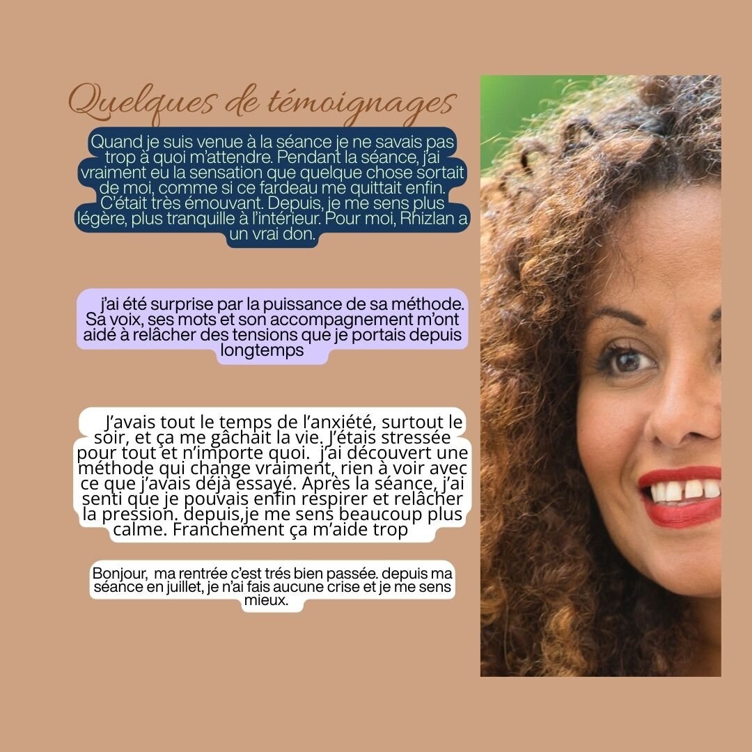 Je suis Rhizlan Iacobbi, thérapeute spécialisée en thérapie brève et hypnose, à Nice centre-ville, Antibes et également en visio. J'accompagne les enfants, les adolescents et les adultes à traverser l'anxiété, les traumatismes et les douleurs émotionnelles ou physiques qui s'invitent parfois dans la vie sans prévenir. Mon approche est intégrative et profondément humaine : elle unit la puissance de l'hypnose thérapeutique à une présence bienveillante, à l'écoute du corps, du souffle et des émotions. Chaque séance est un espace où l'on apprend à calmer le mental, à libérer le corps de ses tensions, et à retrouver un équilibre intérieur. Ce qui m'anime, c'est de voir, séance après séance, cette transformation subtile .