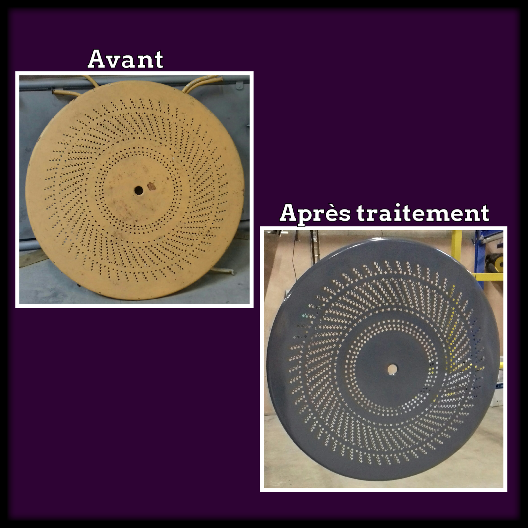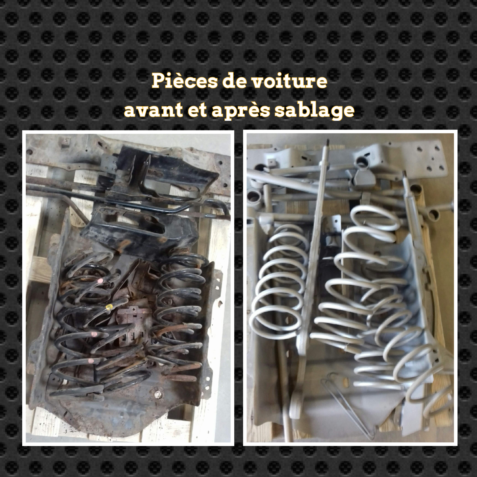 Spécialisé dans le traitement des surfaces métalliques, votre satisfaction est notre priorité! Nous vous proposons le décapage par sablage (sablage, micro-sablage, grenaillage, etc) et la peinture par thermolaquage (peinture époxy). Nous pouvons traiter toutes vos pièces métalliques, y compris les plus spécifiques et les plus fragiles.