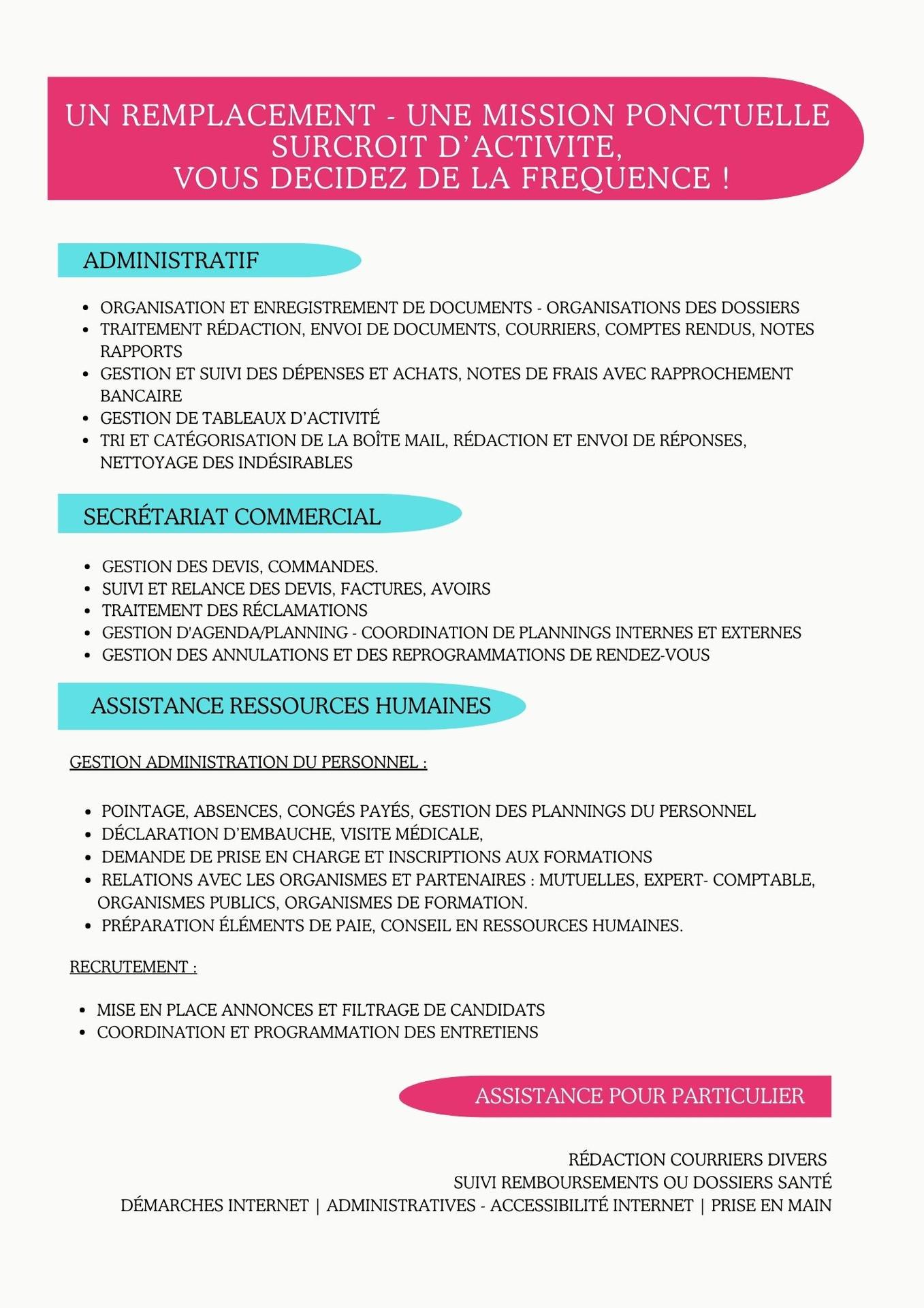 Assistance administrative, commerciale, et ressources humaines pour les TPE, Artisans, Commerçants, Associations, Particuliers.