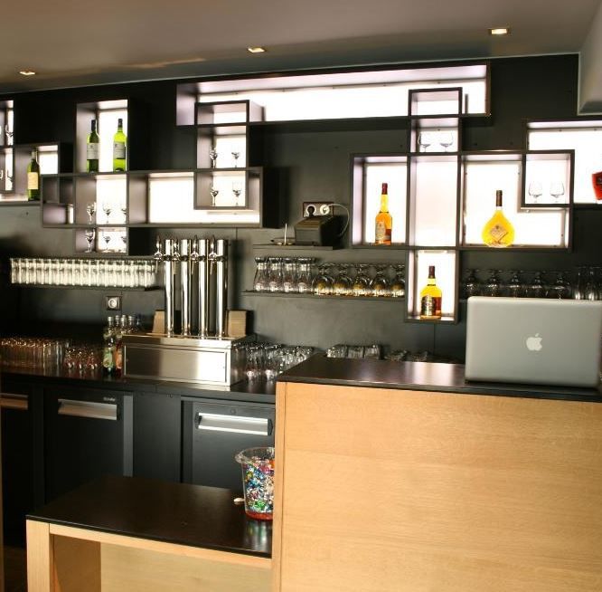 Agencement professionnels : banques d'accueils, bar, mobilier de bar.