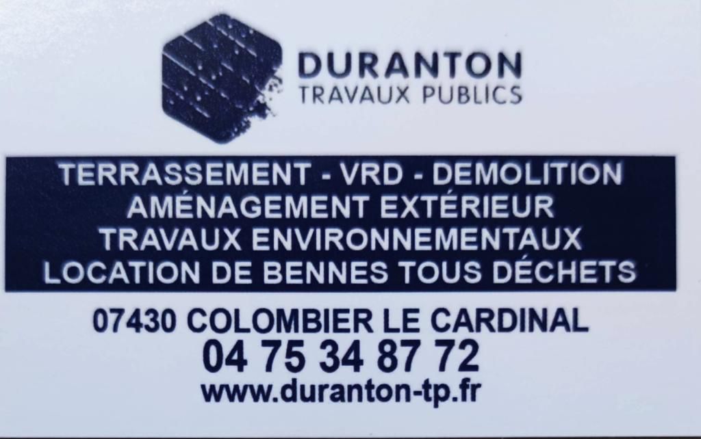 L'entreprise Duranton Jean basée à colombier le cardinal (07430) dans le département 07 - Ardèche assure depuis plus de 25 ans son métier d'entreprise générale de travaux publics. et vous accompagne pour vos projets et vos travaux. L'entreprise est spécialisée dans les domaines suivants : Terrassement - TP - Assainissement