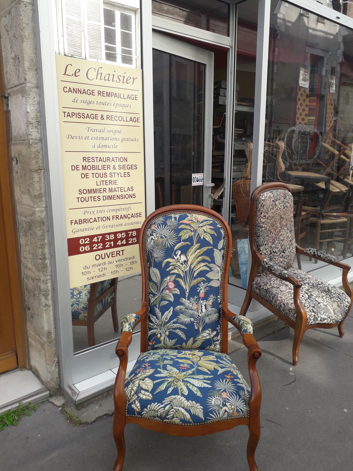 Avec plus de 40 ans d'expérience, votre tapissier décorateur Le Chaisier vous accueille dans son atelier pour la réparation et le relooking de vos meubles, fauteuils, chaises ou encore literie. confection et pause de rideaux..cannage et paillage de sieges