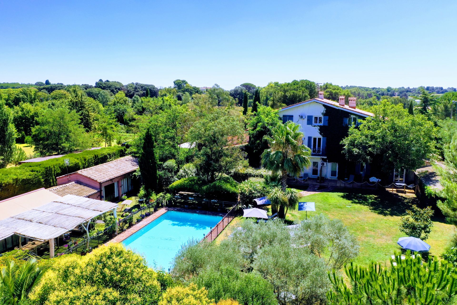 Location de vacances en gîte de charme avec grande piscine dans belle propriété située à 500 m de Montpellier entre un Golf et 50 ha de vignoble à 10 km des plages.
