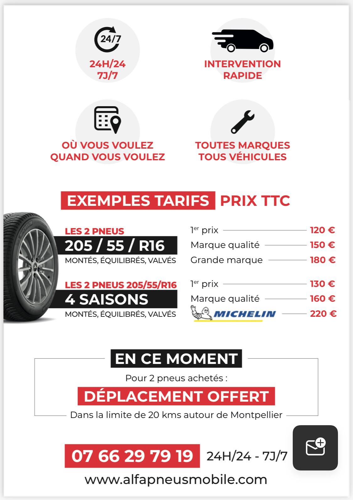 Alfa Pneus Mobile à Montpellier 34070 : Adresse, horaires, téléphone