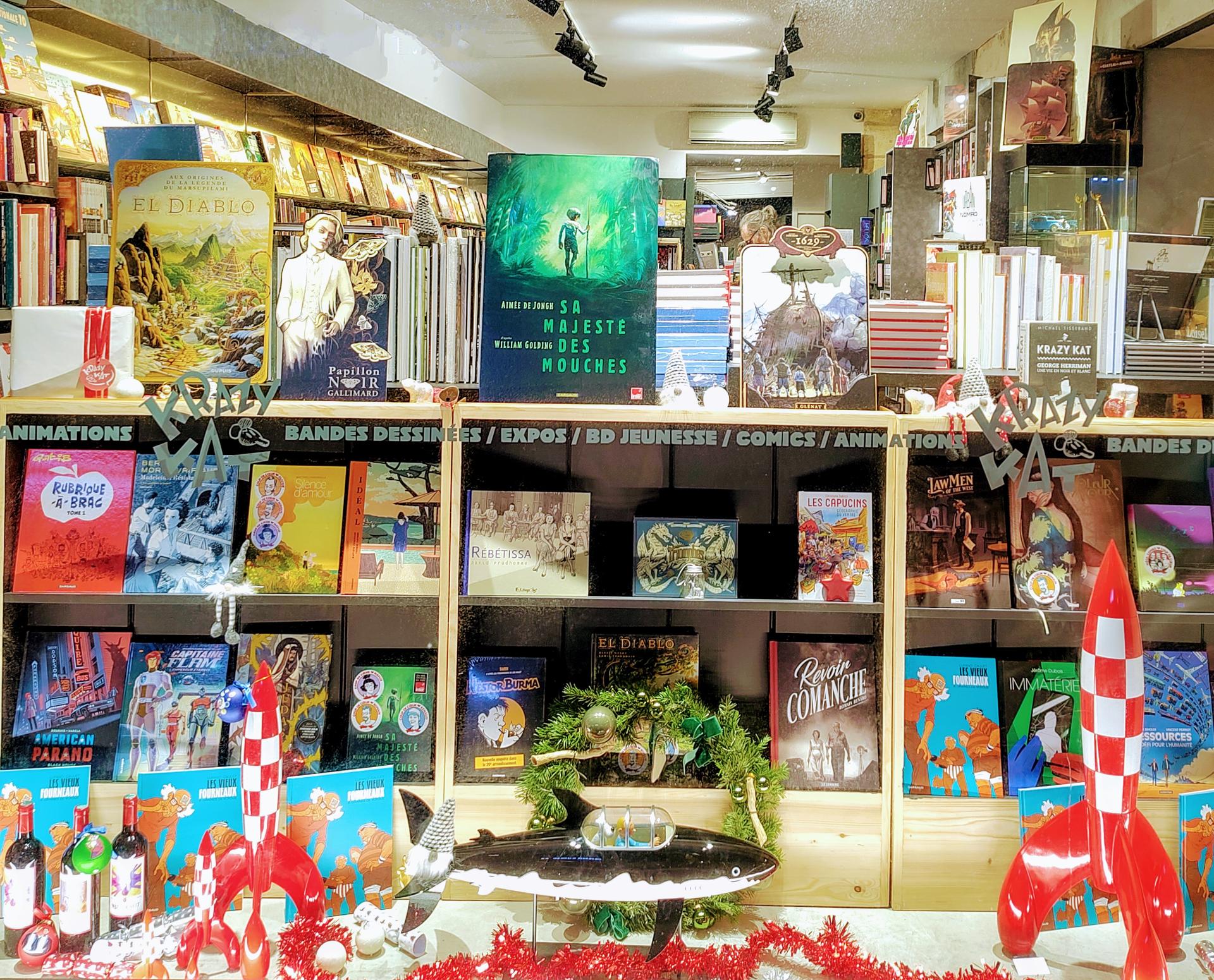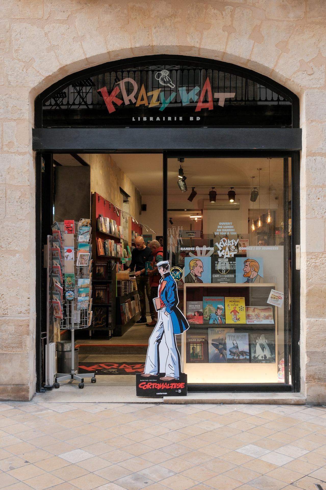 La librairie KRAZY KAT, fondée en 2004 (anciennement BD Fugue Café), est une institution bordelaise de la bande dessinée dans toutes ses représentations : franco-belge, mangas, comics, jeunesse, classiques. . . et propose aussi des figurines, posters et produits dérivés. Avec 30 000 ouvrages, c'est la plus importante du Sud-Ouest de la France. Située au cœur du vieux Bordeaux, elle propose très régulièrement des animations telles que des dédicaces, des conférences, des expositions d'originaux, des jeux et des concerts dessinés.