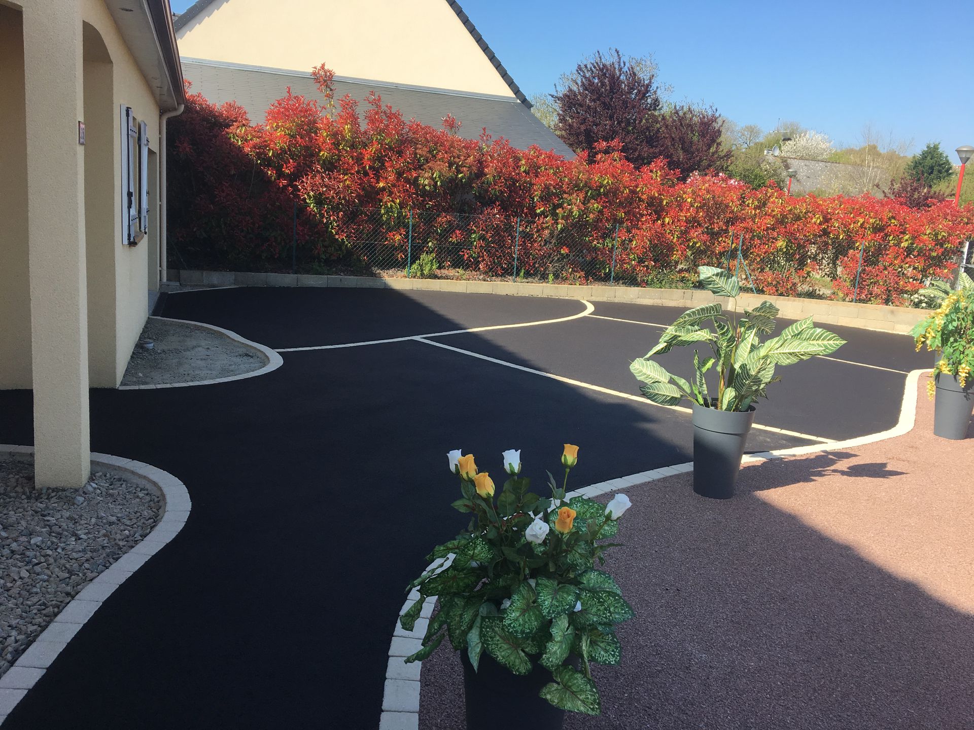 Notre entreprise est spécialisée dans la pose d'enrobé noir à chaud, émulsion rose, grise et béton désactivé.