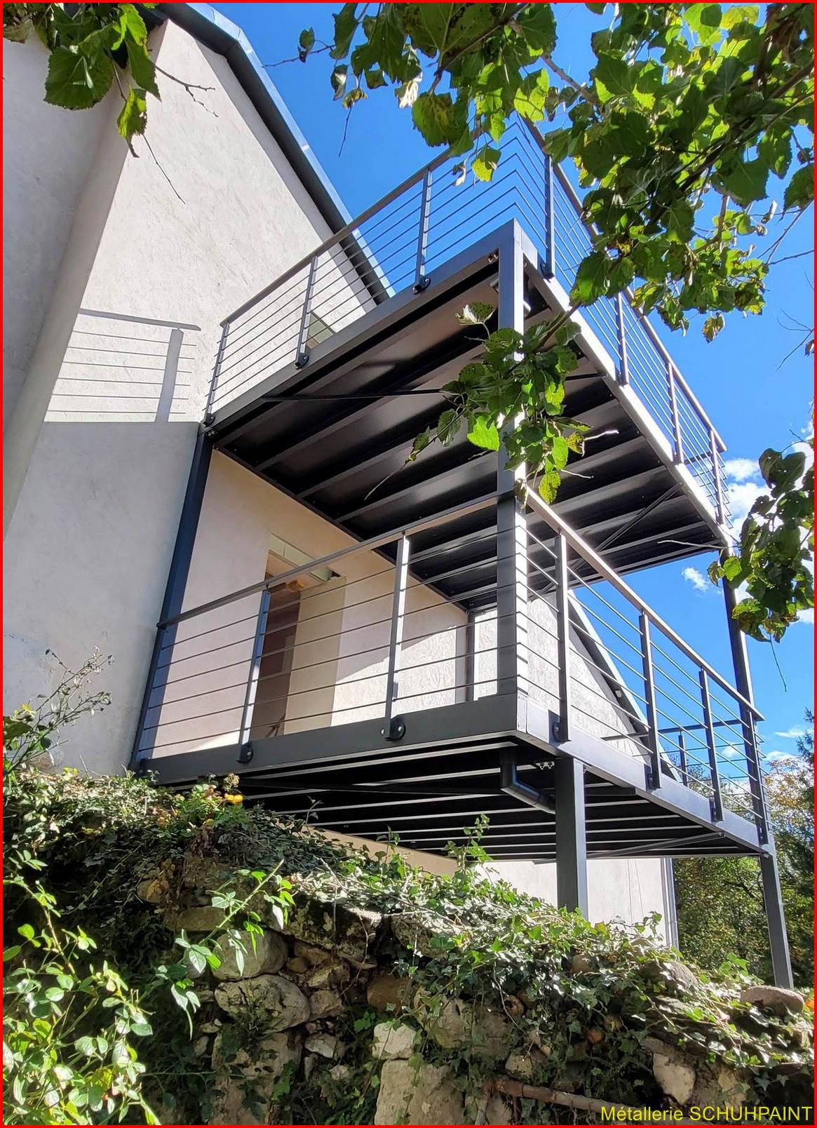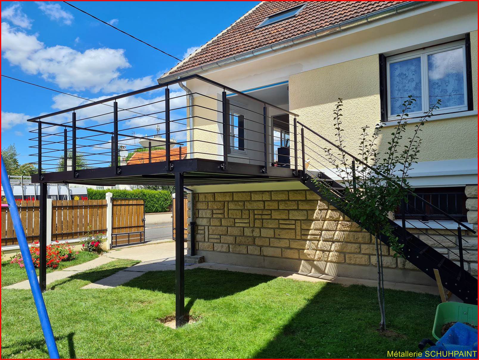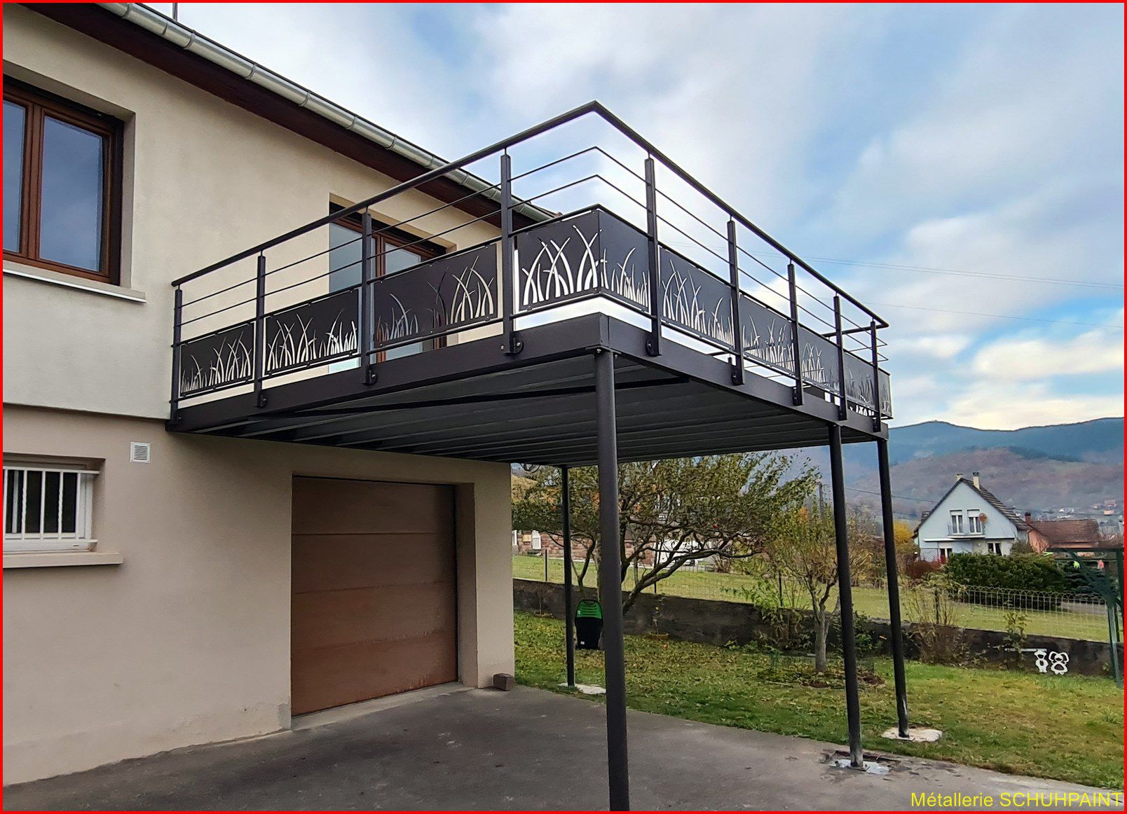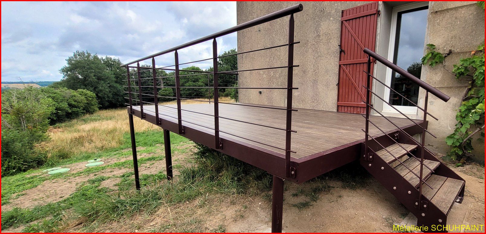 Métallerie Schuhpaint, 20 ans de passion au service de vos extérieurs ! Spécialisés dans la fabrication de terrasses métalliques sur pilotis ou goussets, nous créons des structures solides, élégantes et 100 % sur mesure. Depuis Marckolsheim, notre atelier transforme vos idées en réalité, avec un accompagnement complet : devis en ligne, plans 3D, bureau d'études intégré. Garde-corps, escaliers métalliques, rampes... on vous suit de A à Z. Faites confiance à un artisan local reconnu en Alsace et offrez à votre maison un vrai plus. On démarre quand ?