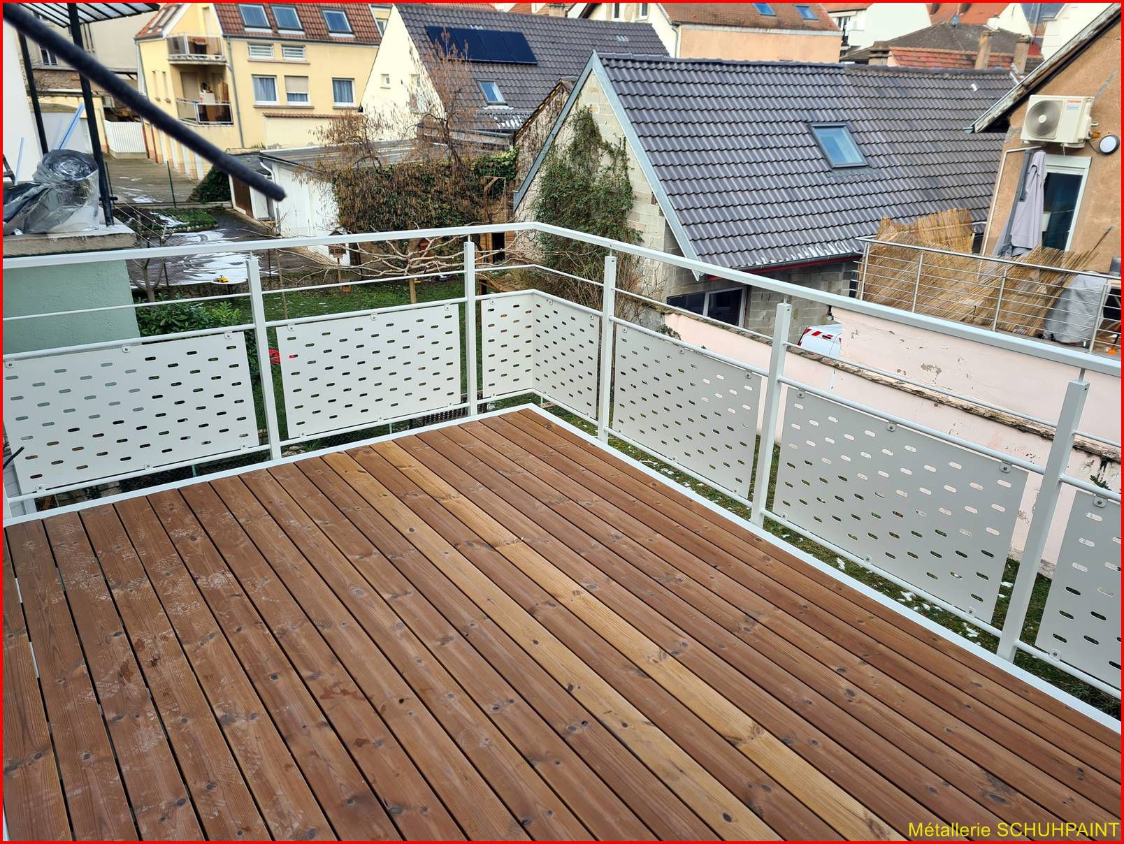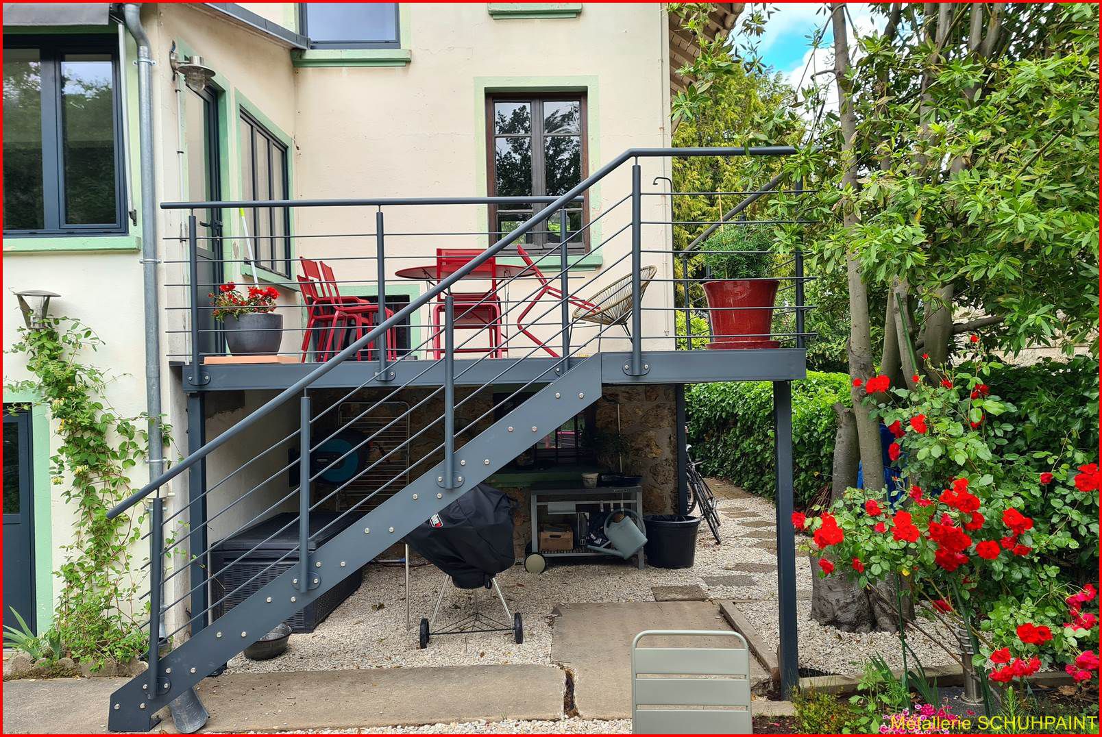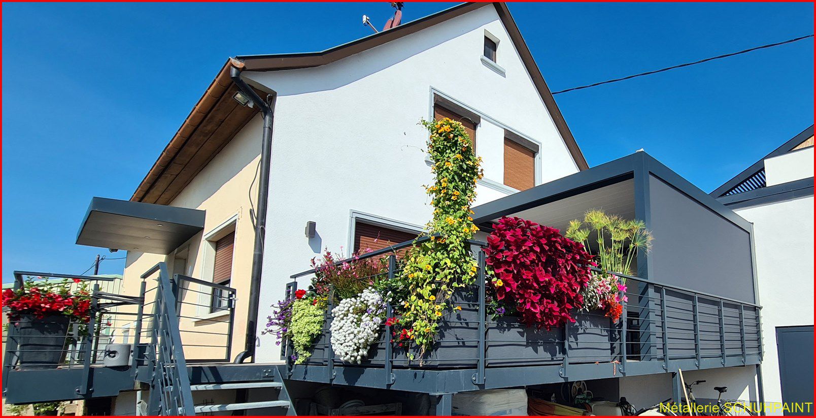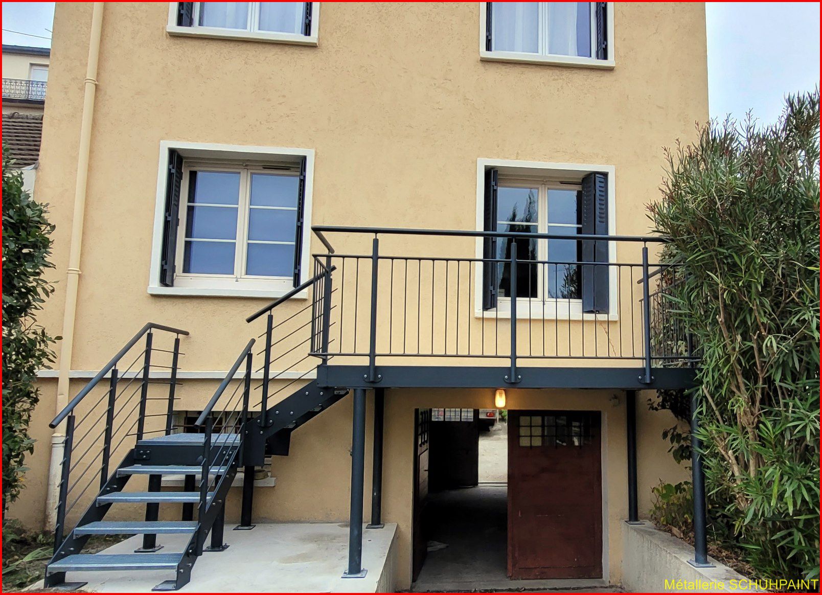 Métallerie Schuhpaint, 20 ans de passion au service de vos extérieurs ! Spécialisés dans la fabrication de terrasses métalliques sur pilotis ou goussets, nous créons des structures solides, élégantes et 100 % sur mesure. Depuis Marckolsheim, notre atelier transforme vos idées en réalité, avec un accompagnement complet : devis en ligne, plans 3D, bureau d'études intégré. Garde-corps, escaliers métalliques, rampes... on vous suit de A à Z. Faites confiance à un artisan local reconnu en Alsace et offrez à votre maison un vrai plus. On démarre quand ?