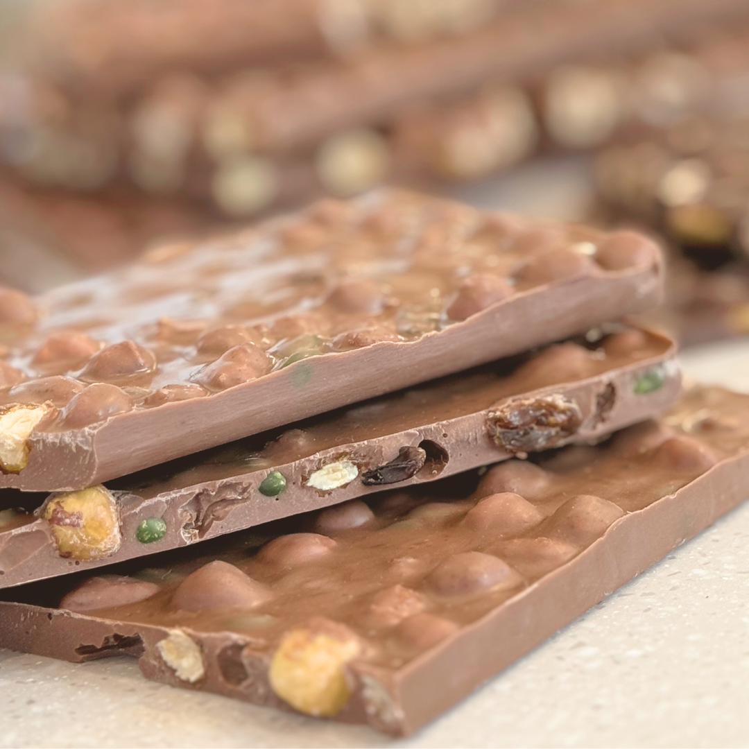 Venez déguster nos œuvres sucrées telles que nos macarons, nos assortiments de chocolats, nos confiseries, ainsi que nos pâtes à tartiner maison !