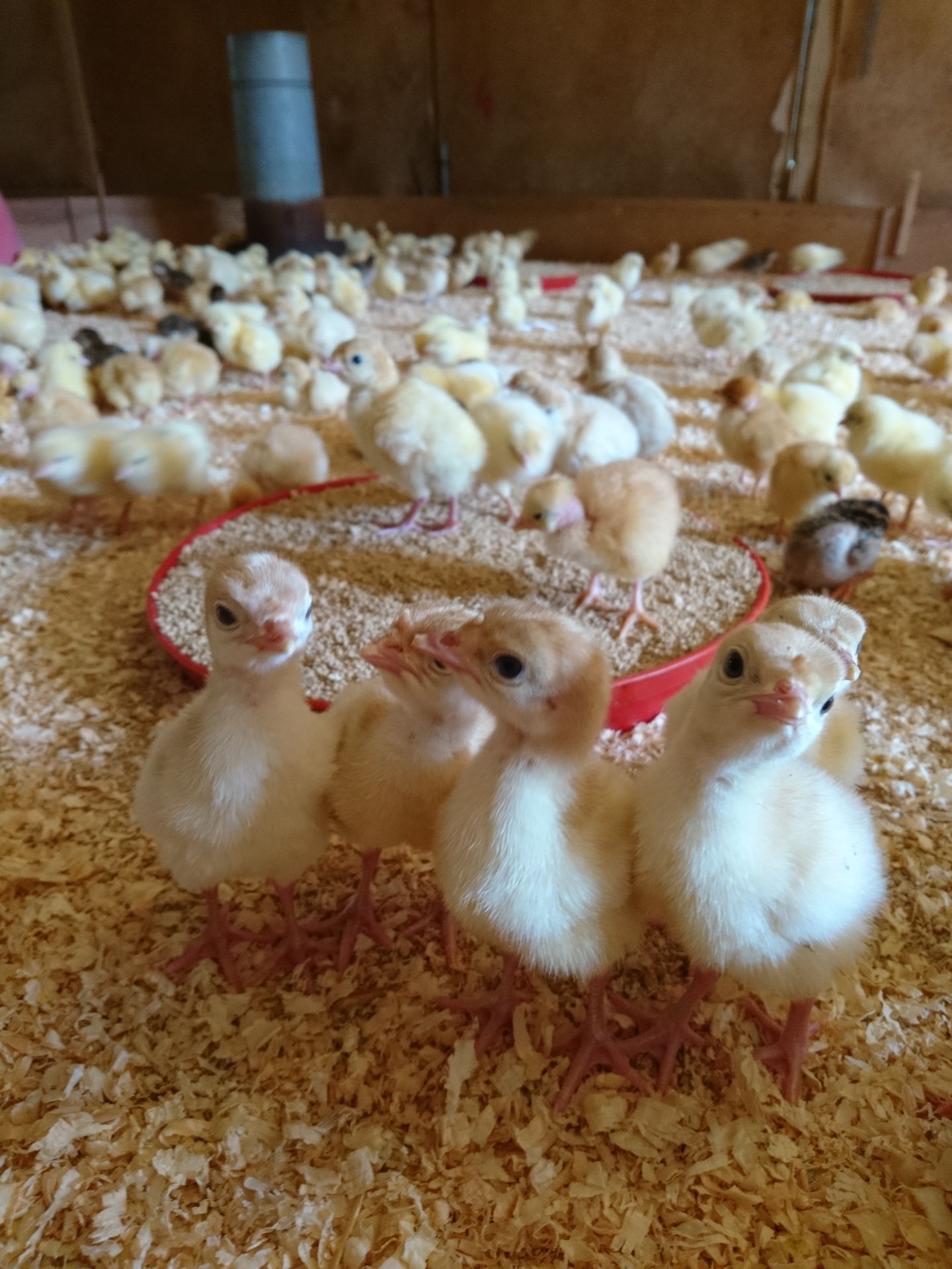 Nous produisons , les poussins d'un jour, les volailles démarrées jusqu'à la poule prête à pondre de 20 semaines.