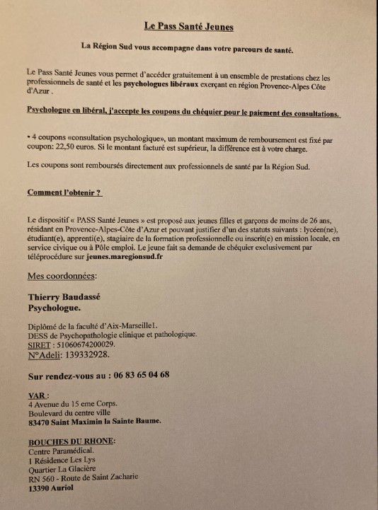 Baudassé Thierry, psychologue clinicien, je vous reçois pour une thérapie brève ou un travail d'élaboration de plus longue durée également.